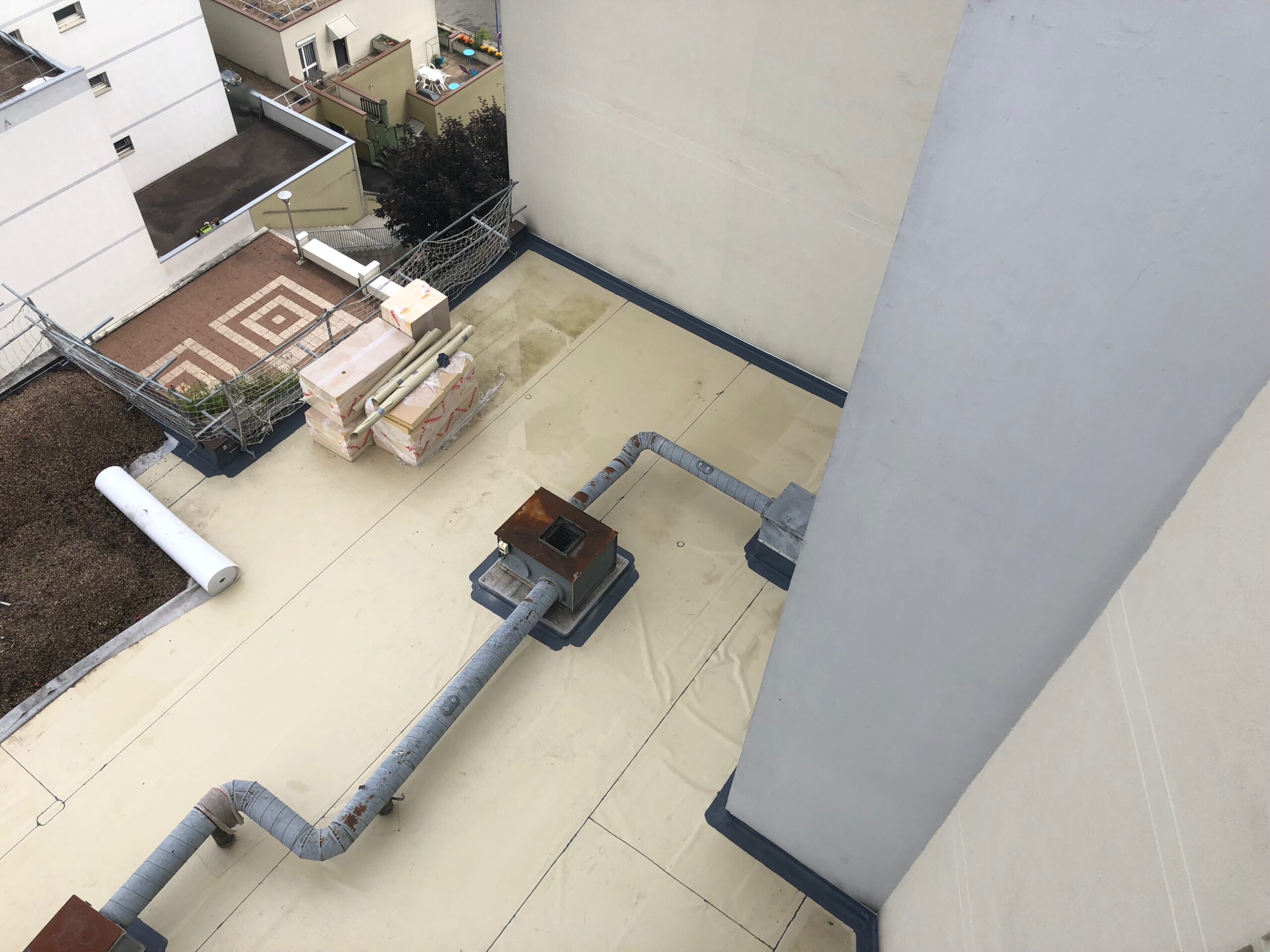 Cependant, ce genre de construction nécessite, comme tout bâtiment, des entretiens réguliers afin de préserver sa structure. Nous sommes alors intervenus afin de remplacer l’ensemble de l’étanchéité vieillissante des terrasses de cette résidence.